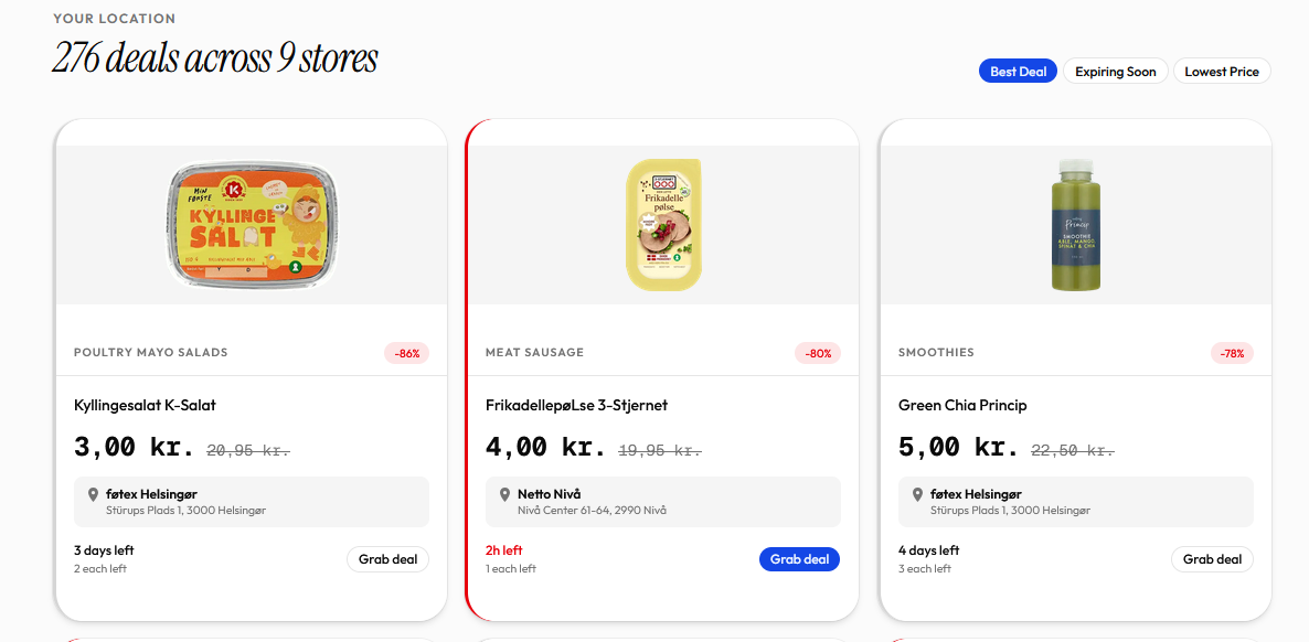 Main goal was to create a concept idea for testing out salling group API's. It gets the data from Salling Group API and shows which foods are on a sale because of short expiration date. This is a concept project and is not intended for public use yet.